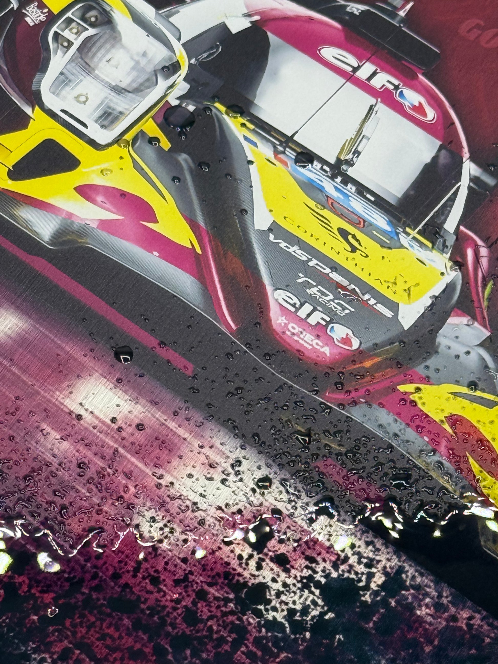 Imprimé sur aluminium brossé avec vernis, ce visuel capture toute la puissance brute et la finesse technique de la #48 de vdS PANIS RACING.